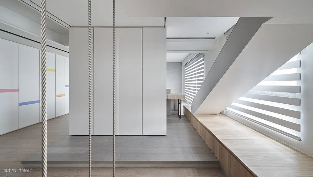 在小朋友的成长过程中,陪伴尤为重要,在家里有一片单独的娱乐区,亲子活动都在此进行,对小朋友来说,就是童年里最大的幸福。在窗前做亲子娱乐区的方式有很多种,直接在窗前铺设地垫就是最简单一种方式,还可以选择在窗前定制榻榻米,抬高地面下方做储物空间,上方可以休闲玩耍。
