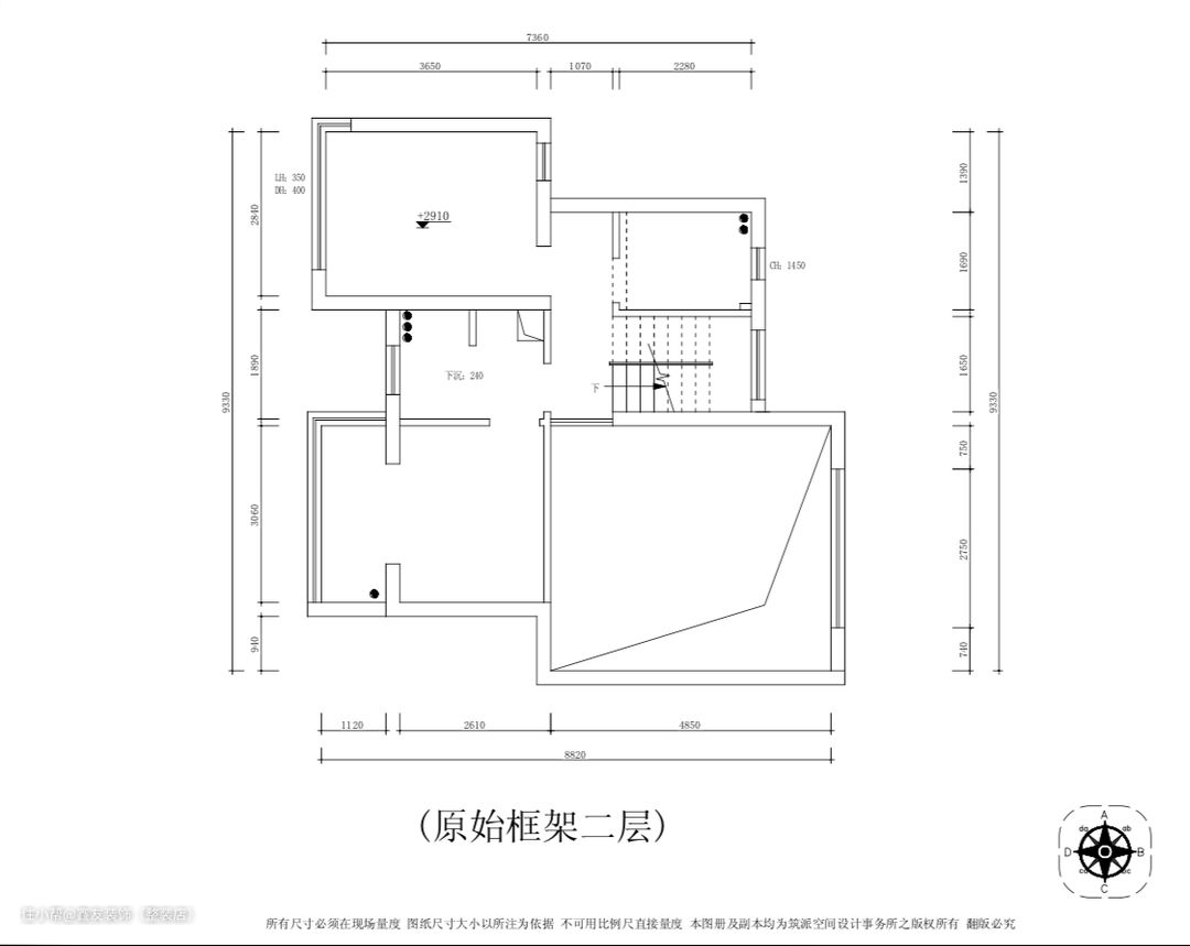 我们看一下一楼卫生间那个小便池的“惊喜”。虽然卫生间有往外扩了一点点,但是小便池毕竟是挂在墙上的,这让在坐便池上方便的人显得很是尴尬。最终这一设计决策在后面的项目施工中变成了待定项。(现实装修过程中有一些装修纠纷,比方说:马桶旁边做开关插座,本来是个很好的设计亮点,但因为插座位置布置的问题,最后变成了一个多余的累赘)就是因为平面上的呈现与立体的呈现不兼容导致。应当注意立体空间的细节。