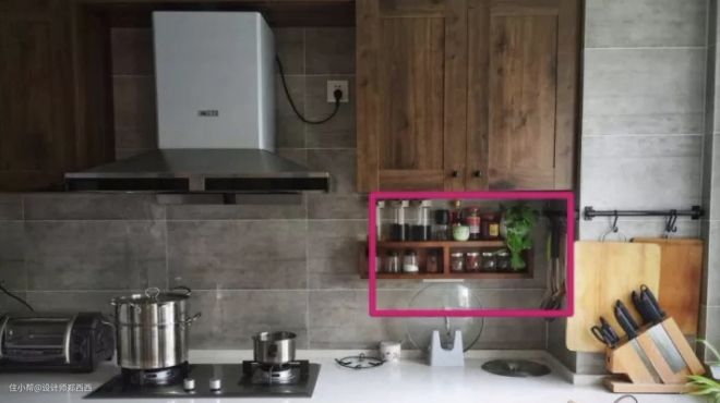 总之,锅具和小家电都摆在台面上还是显得厨房太乱了,如果家里不是承重墙,可以做一面嵌入式橱柜,一面柜子能解决所有收纳难题。