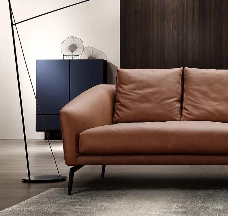 由采用进口纳帕牛皮,内部填充高回弹海绵;柔软扶手包,填充羽绒+公仔棉;沙发以金属底座托离地面,裸露的支脚凸显现代气息。
