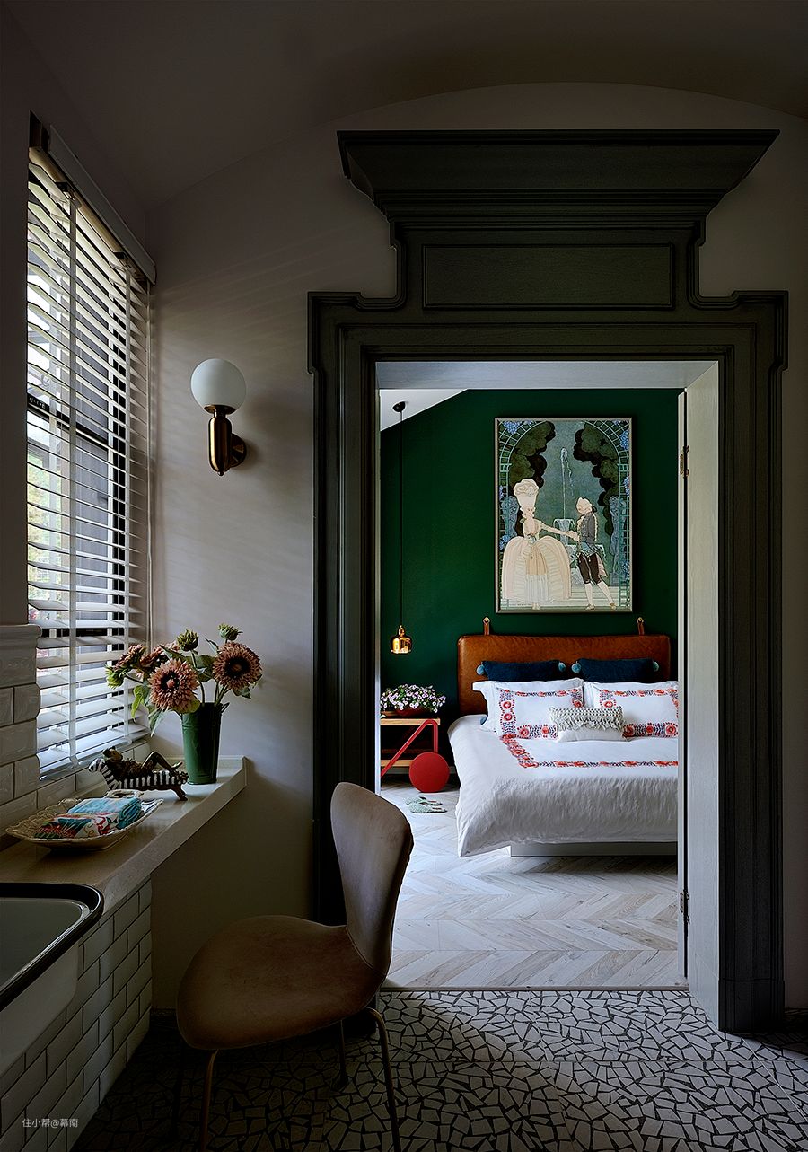 这套房是业主夫妻给自己准备的退休后的两人世界,主卧采用双门是因为业主担心年老生病时需要轮椅通行。