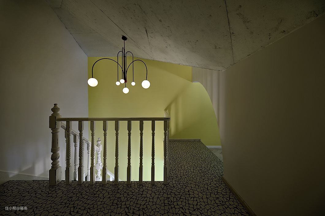 这本来会是套平庸的精装房,用“平庸”来形容精装房并不刻薄,考虑成本利润并迎合大众审美的,一般都挺凑合。但是,由于顶楼有赠送阁楼,无法直接套用开发商的图纸,这下连“平庸”都很难混了,业主看到邻居把楼梯搭盖到阳台的错误示范吓坏了,从而找到我们