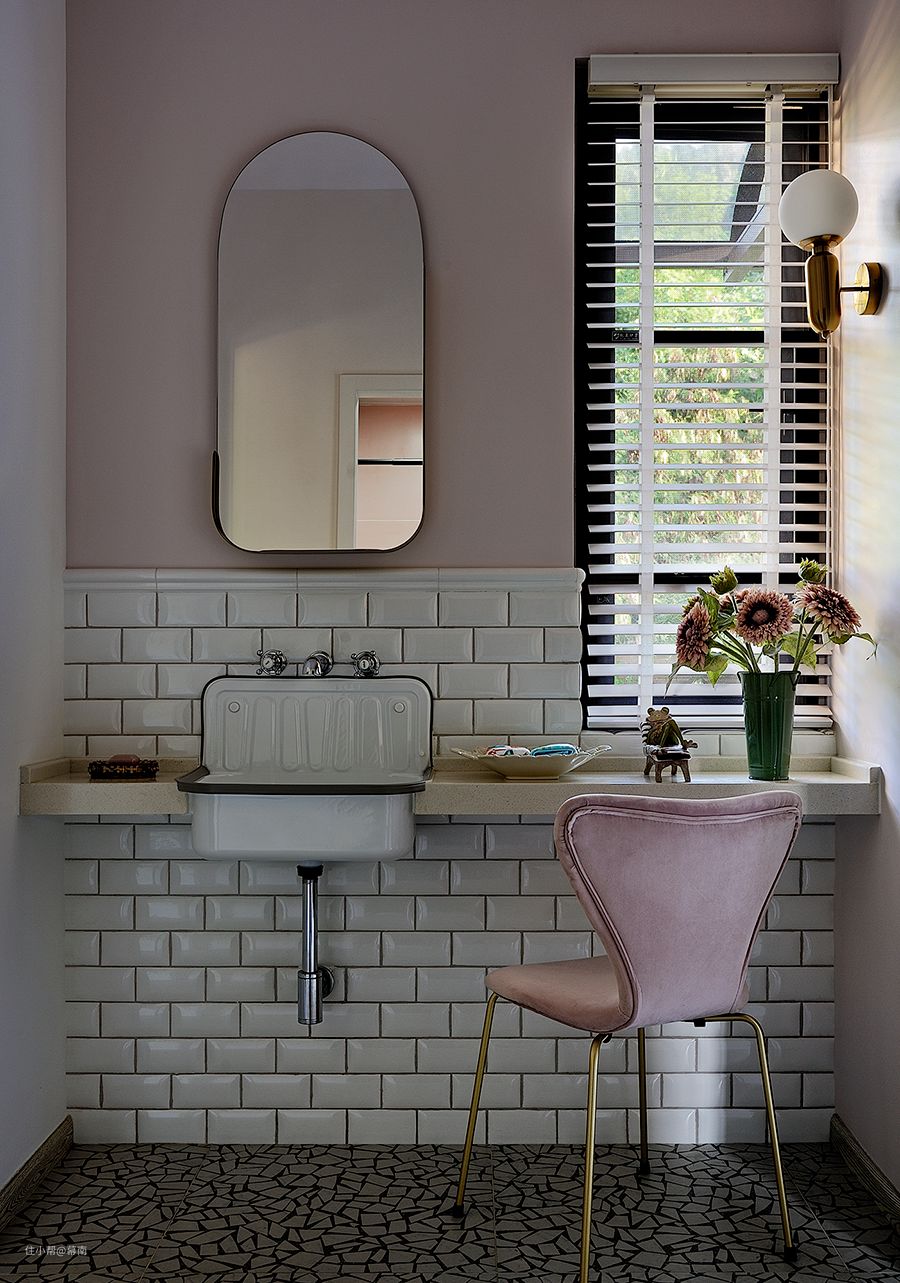 干区上空太矮,在二楼没有可用价值,于是我把这高度保留到一楼,弧顶搭配拔高后的造型门套,给空间增添几分趣味。