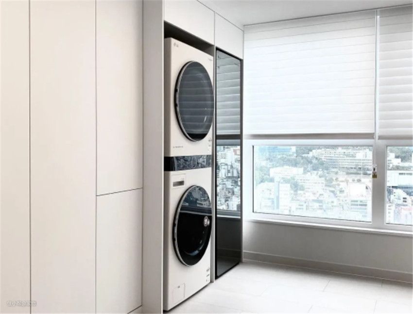 此外,多数人家会选择同时设置洗衣机和烘衣机,既能节能晾衣空间,又避免冬季衣服晾晒不了而带来的潮湿。