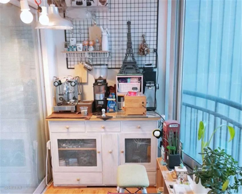 更追求高级感的,还能在墙角放一台咖啡机,自己工作累了闲下来,到阳台为自己磨一杯咖啡,绝对别有一番体会。