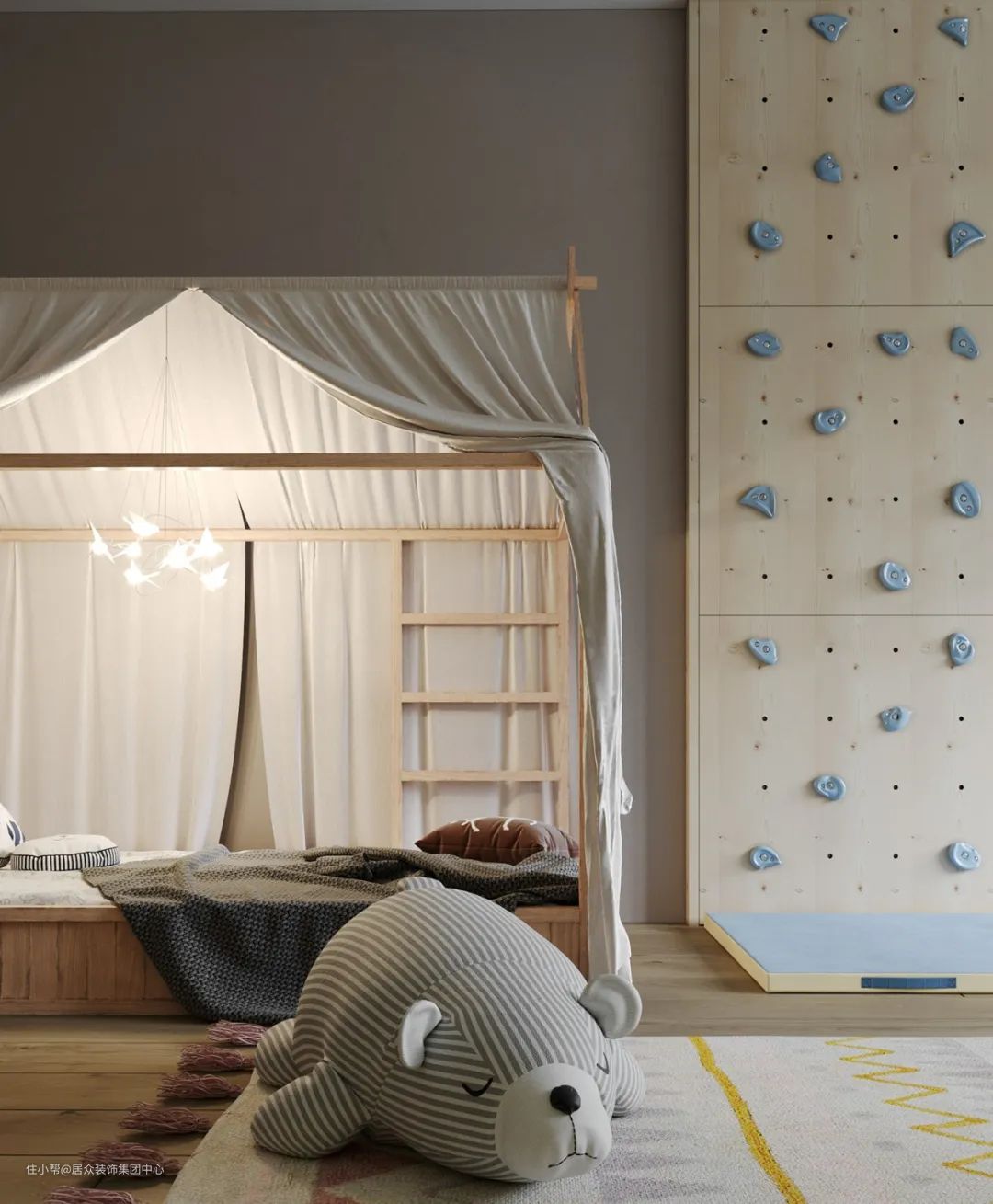 ▲浅灰色与原木色,身在其中,感觉就和这只安静睡着的小熊一样舒服惬意