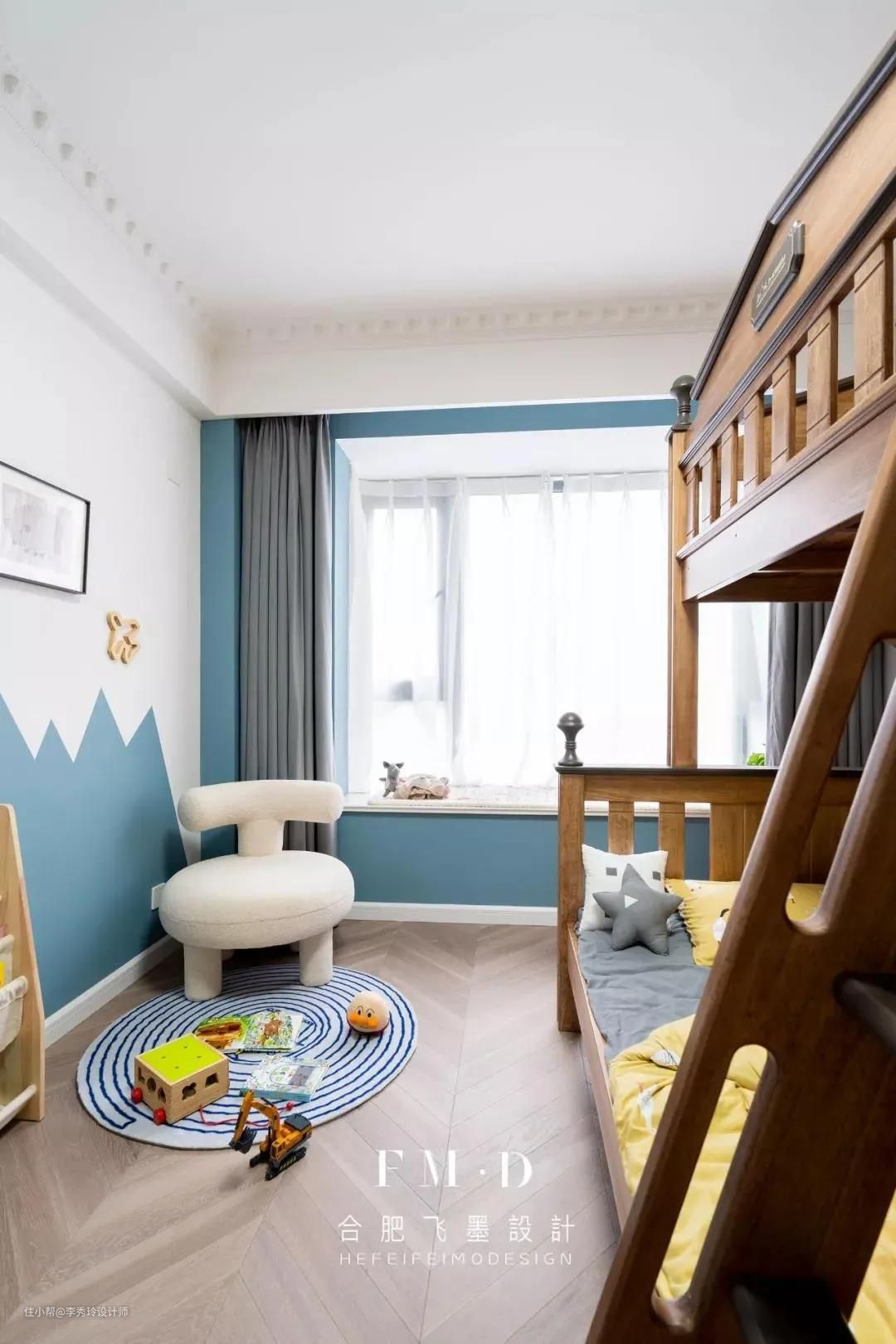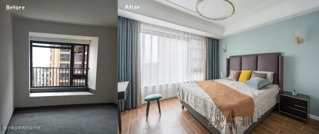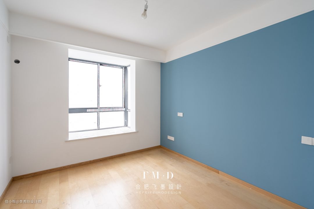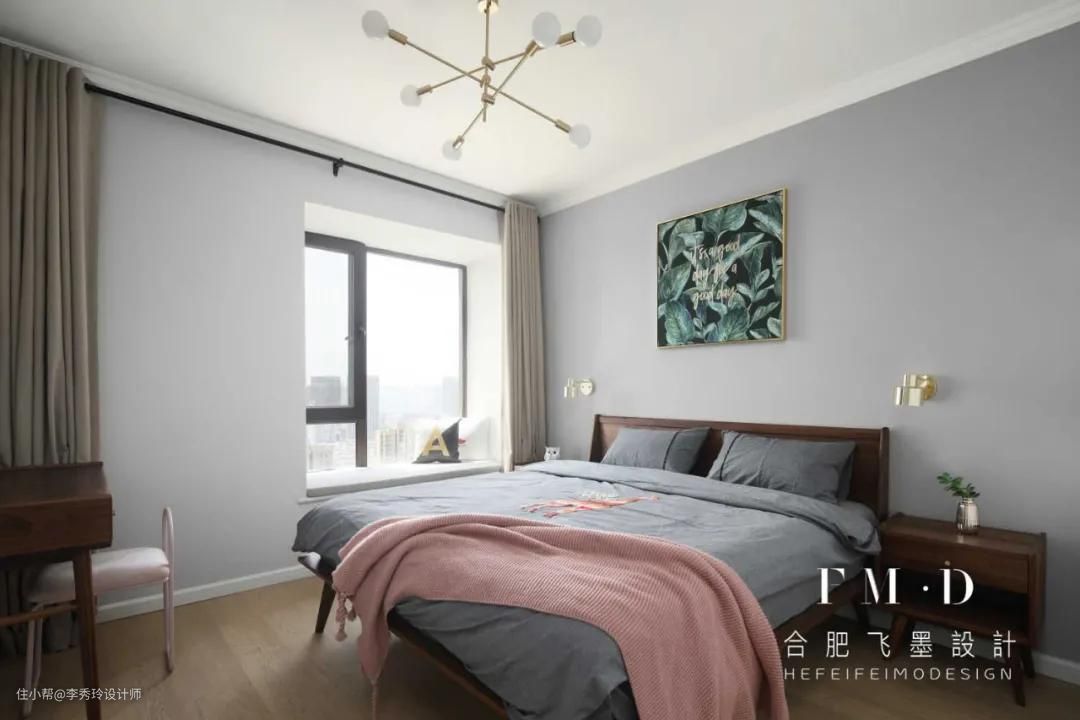 飘窗作为房间里采光较好的地方,打掉现场手工制作书桌,空间贴合度最高;高度通常设计在75cm上下,可根据业主身高进行上下调节。