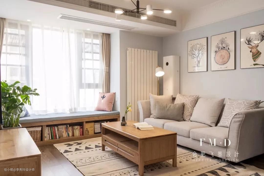 上面的两种方法适合真飘窗设计,不用砸墙就能完成,但收纳力要想更高,还是得看假飘窗。将底部的墙体砸掉后,设计柜体收纳,既提高收纳力,也不影响休闲功能。柜体的高度建议在60cm上下。