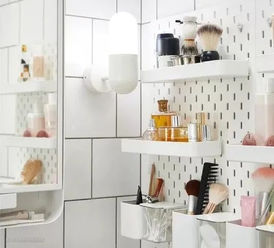 小推车是地面收纳万金油,而洞洞板根本不会放过每寸空间!把它放在卫生间,用金属材质其次根据化妆品数量来决定要用什么配件,超方便!