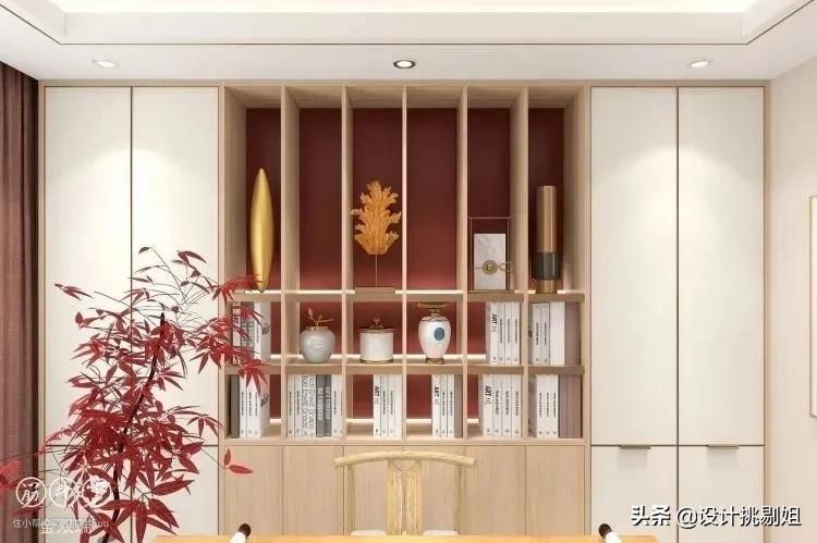 ▲故宫红成为空间的一抹亮色,既能凸显出新中式的古典韵味,也能发挥出书房的独特魅力。大书桌写字台,不管是练字还是作画,都有足够宽敞的空间尽情发挥。
