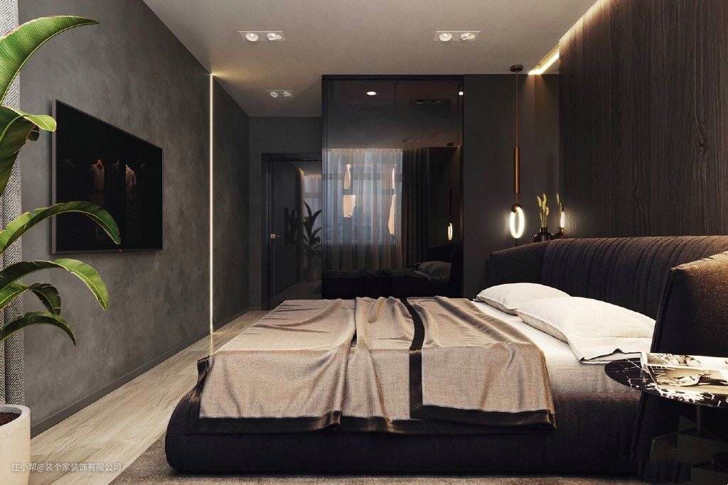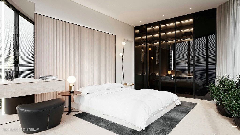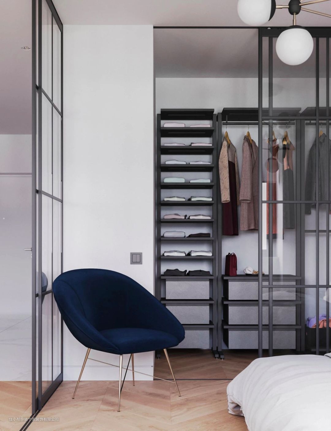 卧室里一些不规则空间的死角位置,其实可以利用起来,做成定制衣橱,加上玻璃推拉门,瞬间整个角落高级感十足!