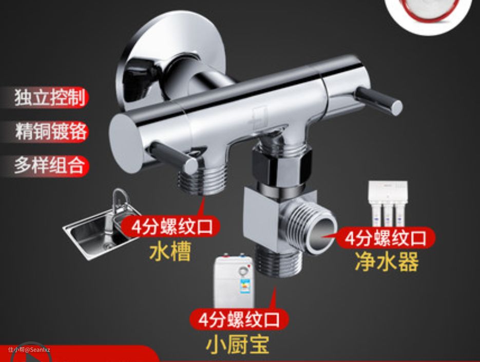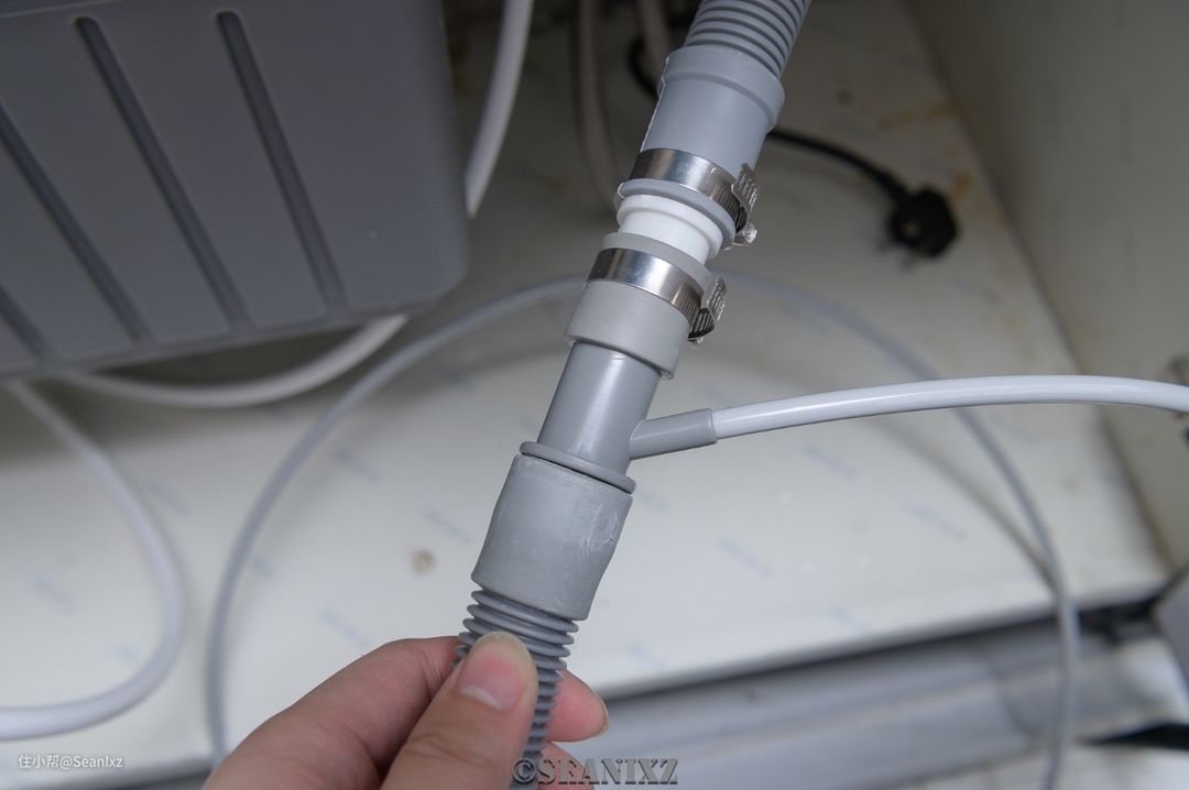 三通阀接到进水管位置,我这里设备比较多,除了水槽进水还有洗碗机等,把净水器的三通加装上去就行了,不过接头多了会增加漏水风险,也比较杂乱。