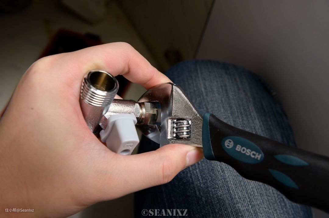 首先安装进水管,进水接三通阀,徒手套上进水管,拧紧螺丝。