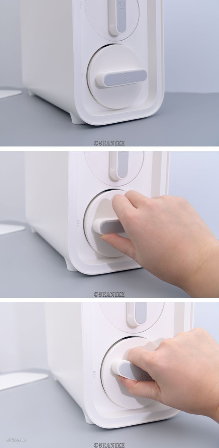 滤芯的安装比较简单,根据提示直接从水平解锁状态转动90°到锁上状态即可,不过需要对准位置,且要比较大的力气,安装好了之后十分紧,而且听到了气体灌入的声音。之前提到的抽真空也把机器内部的气体抽了出来,安装滤芯后应该是顶开了某个密封部位,让气体流入了,水分子比空气更大,气密性好证明也有较好的水密性,侧面印证了有较好的做工。
