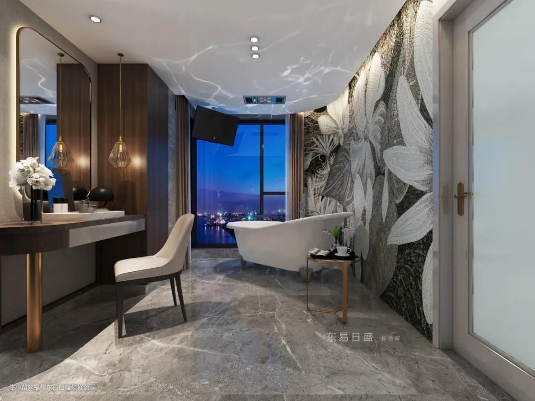 回归居住最本质的意义,回归临水而居的人性本能,观影泡浴区以开放式格局和舒适尺度创造开阔视野。将身心彻底包裹在浴缸里,慵懒放空,一杯威士忌,一张老唱片,透明的时光氤氲流动。