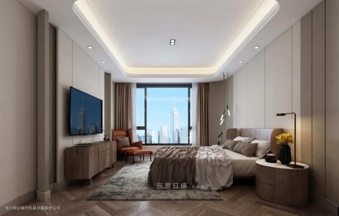 明净透亮的光线从太阳升起开始就眷顾这间拥有大窗户的卧室,温馨与舒适只有通过气氛去营造,护墙板搭配硬包设计,简单而高级地提升空间档次。