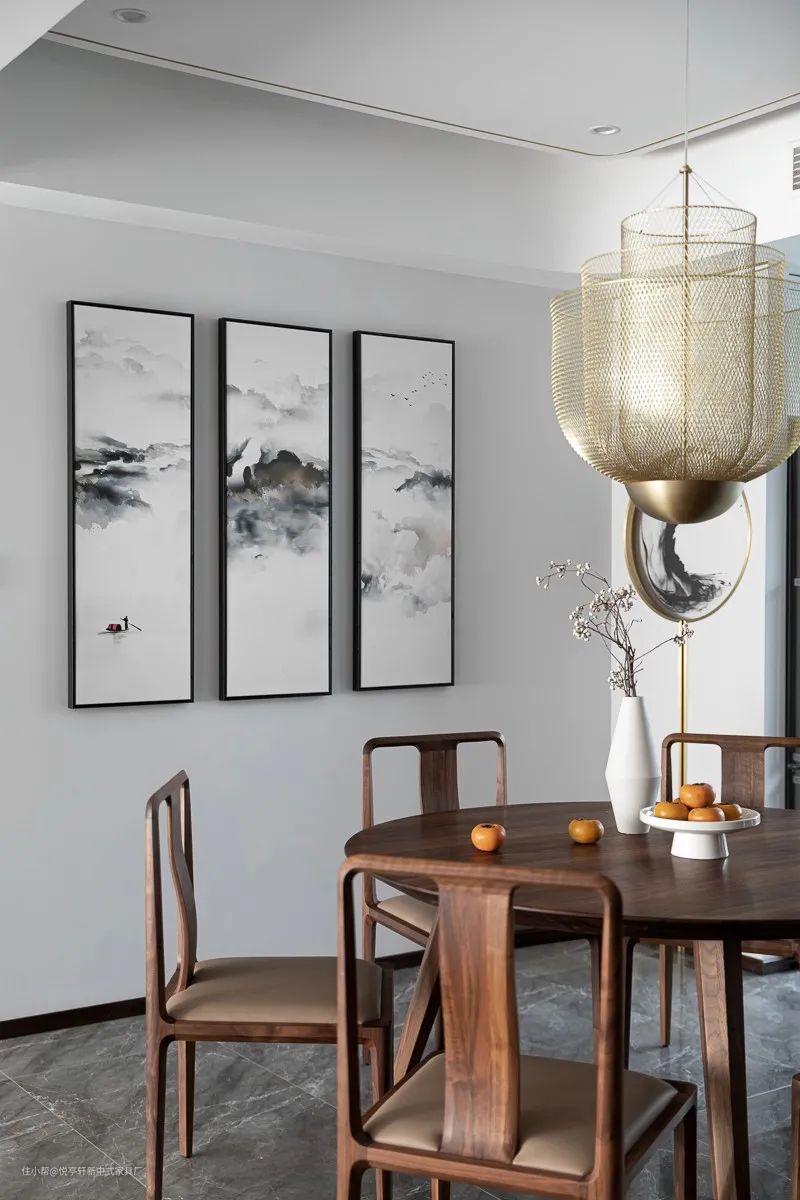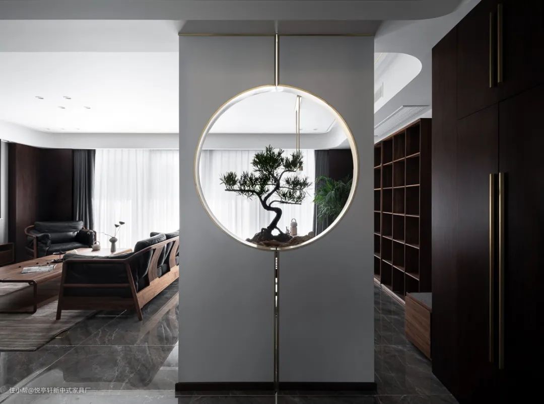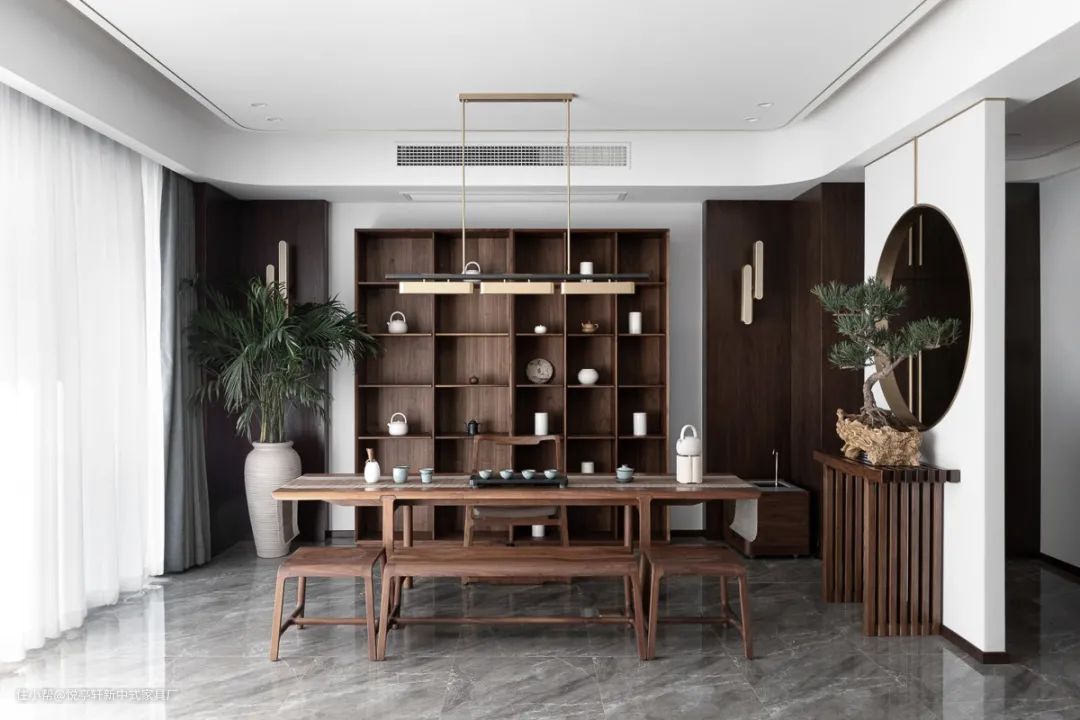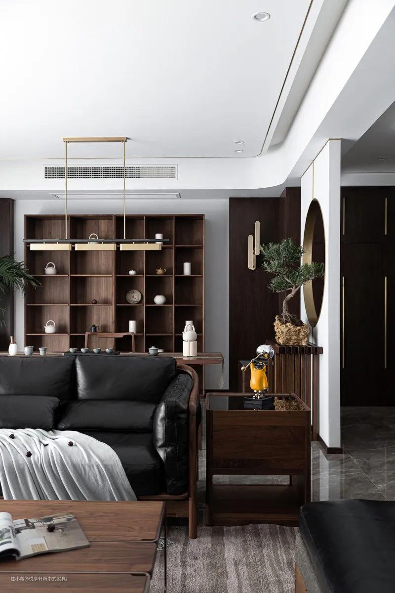 168平新中式,一进客厅美醉了!黑胡桃家具素雅高级