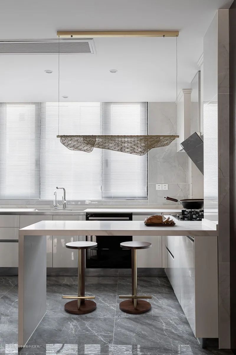 ▲餐厅和开放式厨房一体,不仅空间开阔,光线也加强了不少。随着各种厨房黑科技的发明(比如集成灶),开放式厨房也越来越受欢迎了呢。