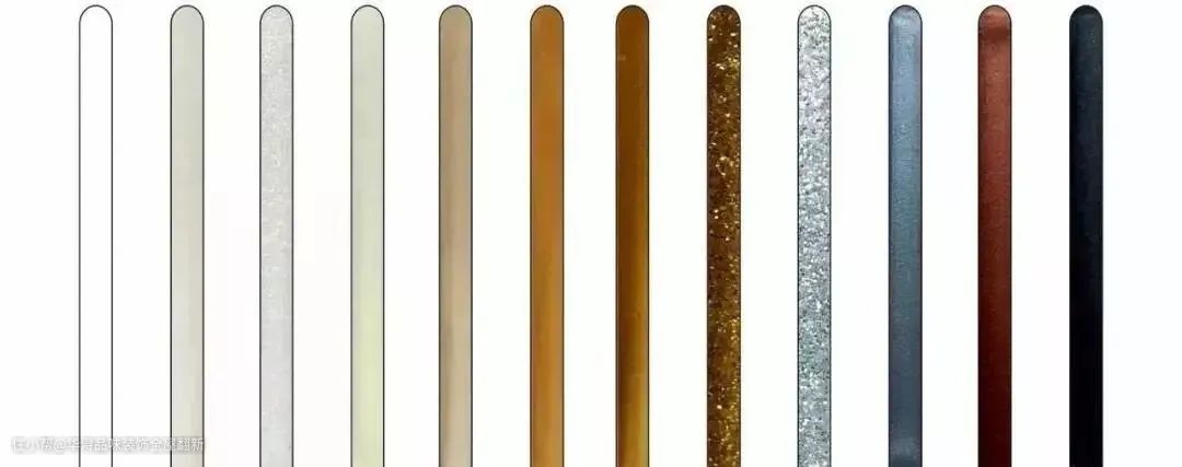 你不知道的是,除了金色,美缝剂的颜色选择还有几十种。从适合黑白灰的北欧风,到热情鲜艳的棕色、红色、蓝色,再到bling bling的奢华亮色。