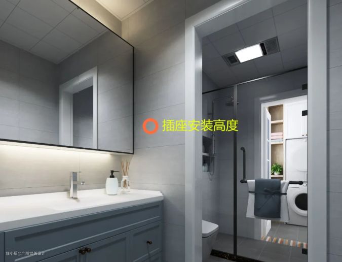 2.电路布置 卫生间里的电路包括:照明、浴霸、智能马桶、吹风机、电热水器等,根据不同的浴室设计,需要预留的电路也不一,因为卫生间面积较小,为了避免出现插座被挡的尴尬,建议各位提前设计规划好,免得装修好,等装马桶或浴室柜才发现问题。