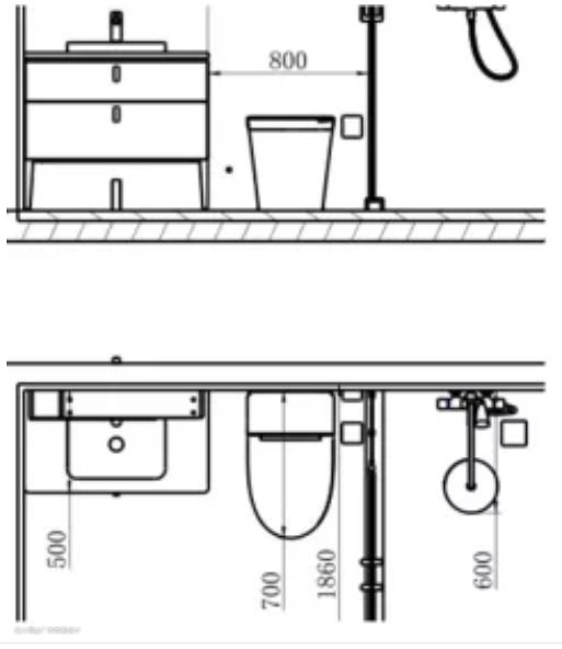 ②给水 卫生间的给水,主要是洗手盆、淋浴房与马桶,如果洗衣机放在卫生间,也要加给水,需要注意的是,卫生间的给水分冷水与热水,而在布置冷热管的时候,也是建议加入回水管,这样安装热水器做“0冷水”的时候效果更好,可以改善卫生间冬天用热水的使用体验。
