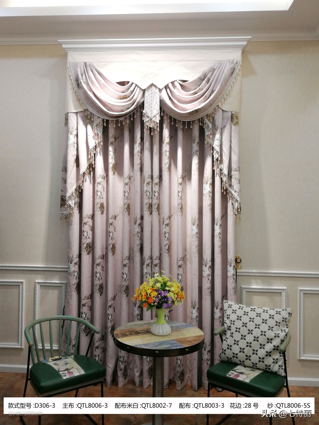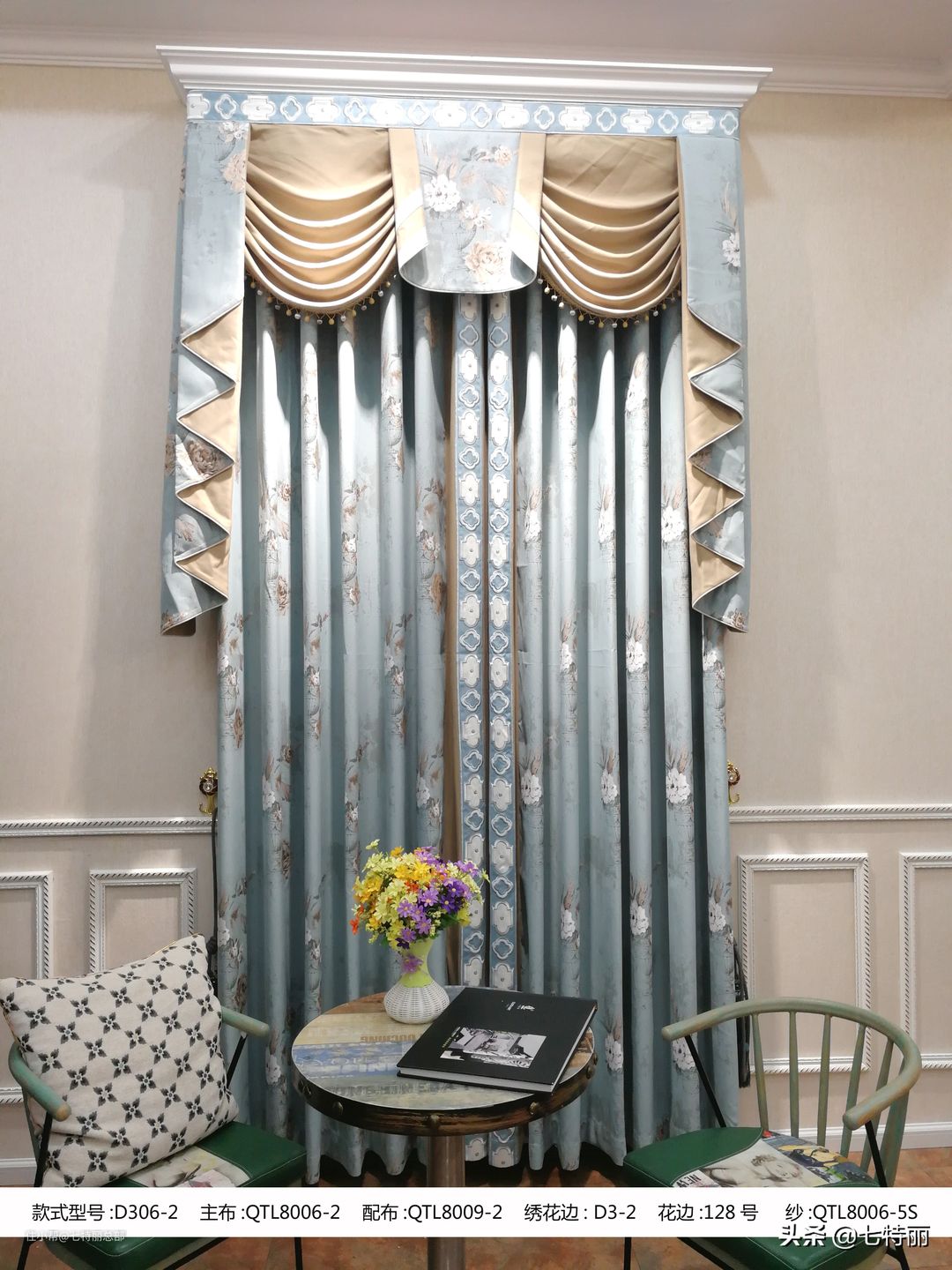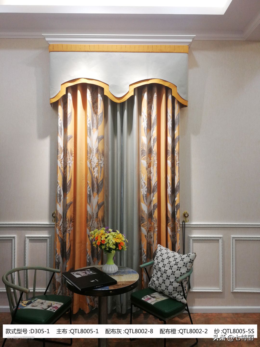 七特丽美式布艺窗帘D305-1款和D306-1款面料色彩特点
