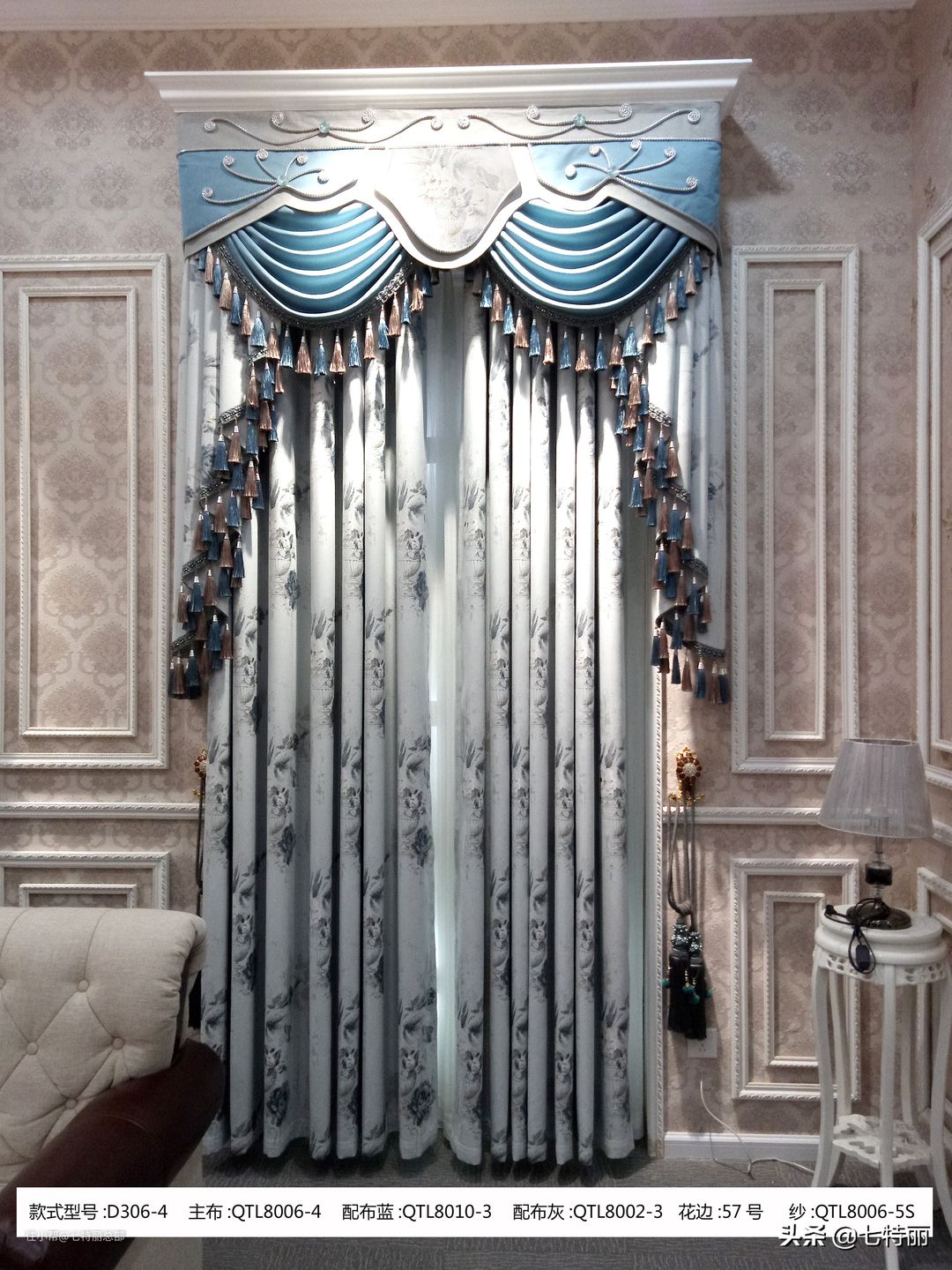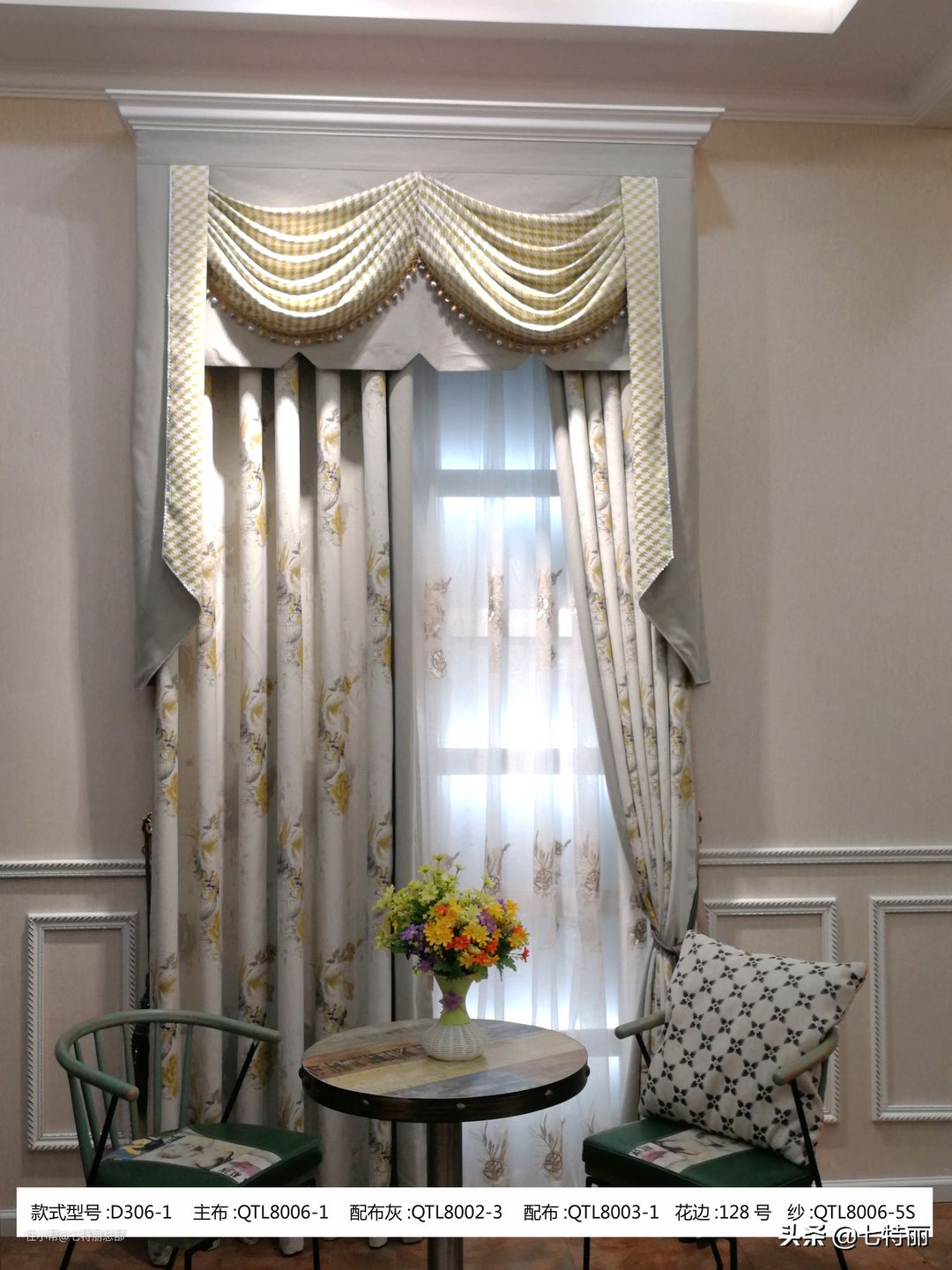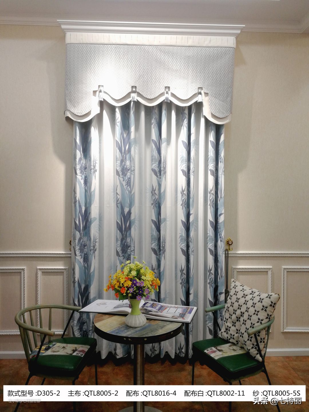 七特丽美式布艺窗帘D305-1款和D306-1款面料色彩特点