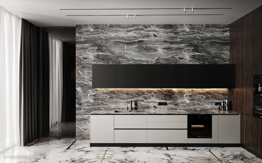 46.瓷砖倒角:把瓷砖都打磨成45℃再拼接,称为倒角,视觉效果美观。