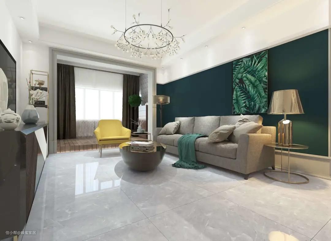 简约风格的客厅它是常驻客人,对于不喜欢华丽审美效果的朋友来说,釉面砖是个挺不错的选择。