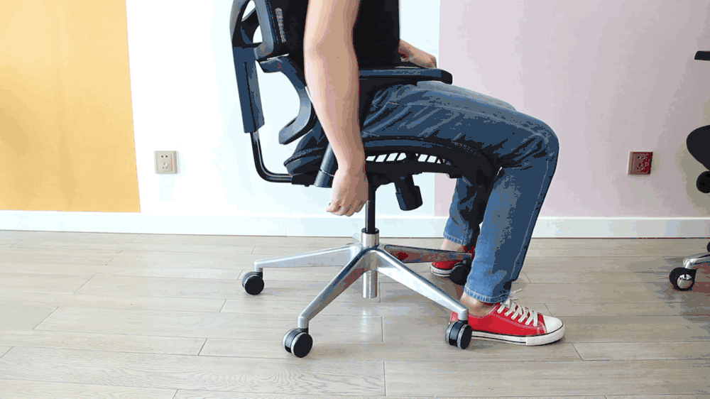 享耀家的初始高度就就比ergomax高近5公分,座椅提高后更适合男生使用,娇小的妹子还是建议选择入门级的人体工学椅,个头相对较小,还是那句话,脚不着地的话,时间久了腿脚容易麻。