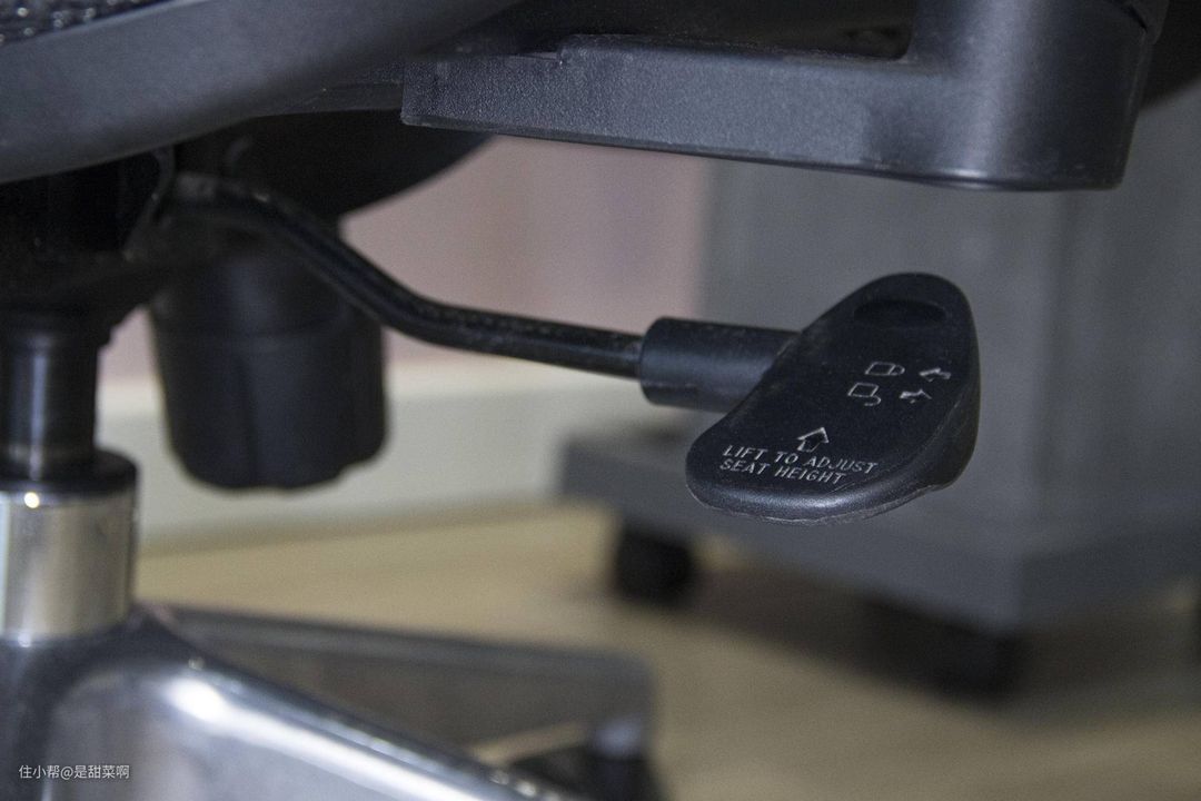 ergomax只有座椅右侧一个开关控制,向外拔出控制躺倒功能,翻转调节高度。