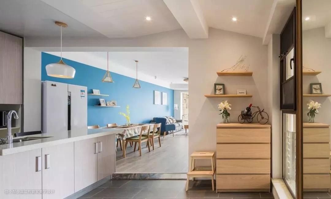 但有的时候鞋柜的深度会受到走廊玄关的宽窄限制。做不下鞋柜的话,可以看看能不能向边上的房间来借空。有时候只要打掉一堵墙就能解决鞋柜的深度不足问题。