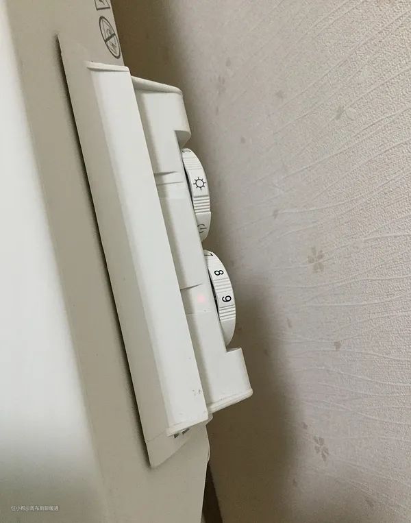 它的控制器是这样的,两个手感非常奇葩的滚轮,有点像传统机械控制式的空调,昨天控制开关,四个档位:防霜冻,节能,正常模式,关闭。但是从测试情况看,放霜冻那挡**,因为在其他任意一档,除了关闭,只要通电了,外界气温低于2度的时候,加热器都会自己启动。右边的滚轮几乎没有阻尼,收到的时候我第一反应是这货坏了。