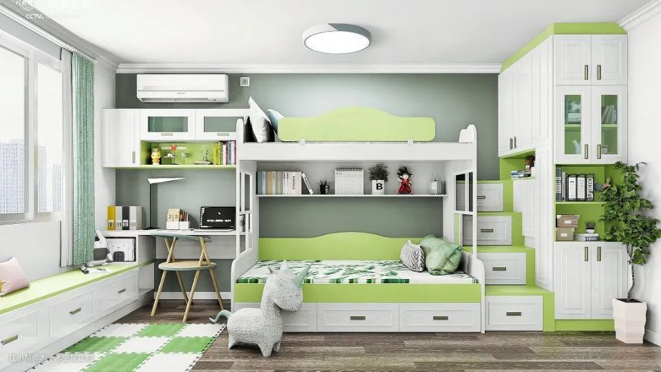 家里有一儿一女,但是却只有一个儿童房,暂时也没有增加卧室的办法,那么两个孩子睡一个房间,怎么设计呢?