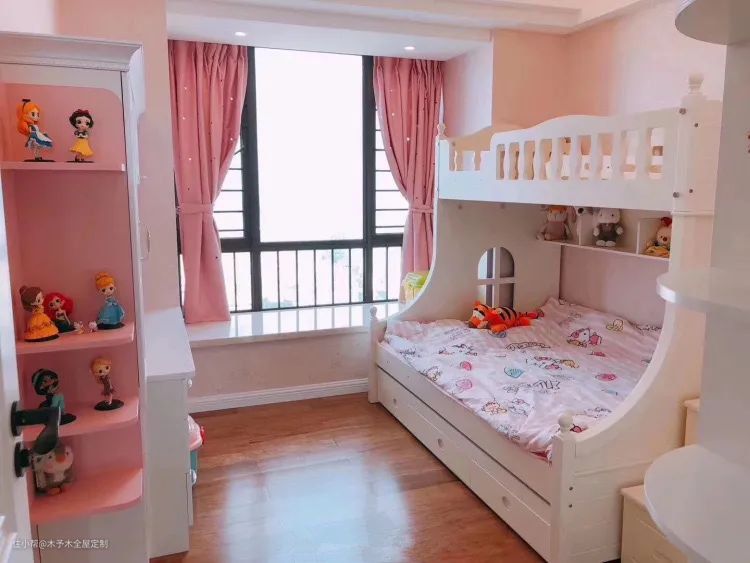 大部分小女生喜爱的公主房,用粉色和白色搭配,打造温馨儿童房,需要注意的是,应该在粉色中加入一定比例的灰度,避免过于艳丽。