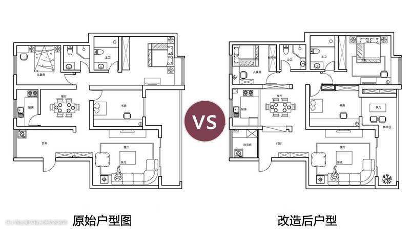建筑改建平面图是根据设计方案将需要改动结构的墙体在图纸上标明的标识,比较常见的表示方法是在图纸上可以用需要拆除的墙体,深色表示改建的墙体。