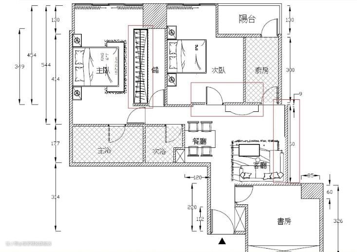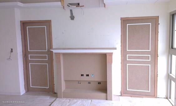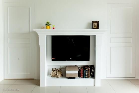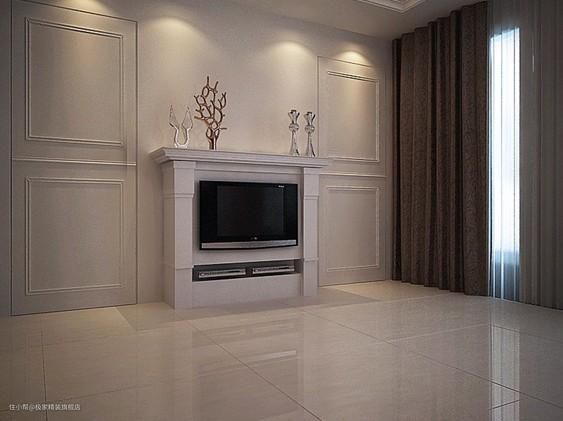 由于这面墙的构想是做隐藏门和壁炉,所以中间壁炉就规划成电视柜▼