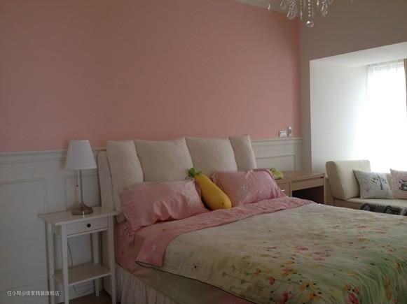 主卧的重点就是我最爱的粉红色墙和整面订做的白色大衣柜