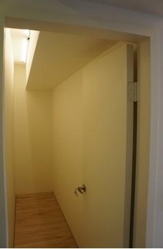 客房与主卧切割完的小空间就拿来当储藏室,大家有没有看到之前恼人的大梁被隔到这边了,这样我的客房看起来就顺眼多啦▼