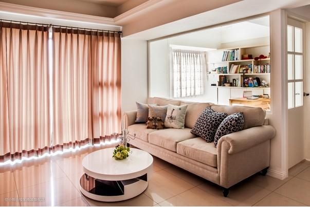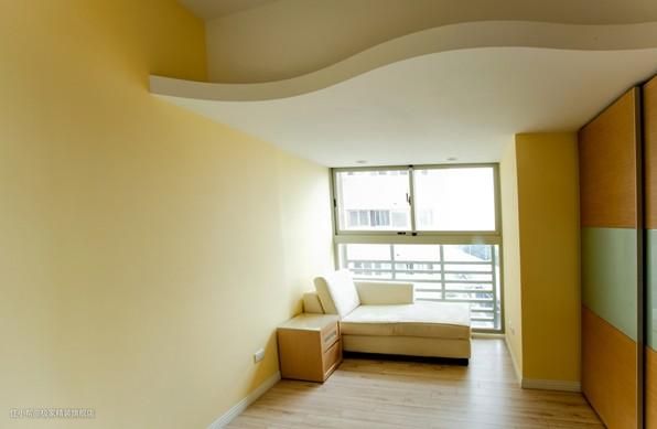 好险设计师用造型曲线修梁,还把将这两间打通并且阳台外推增加空间▼