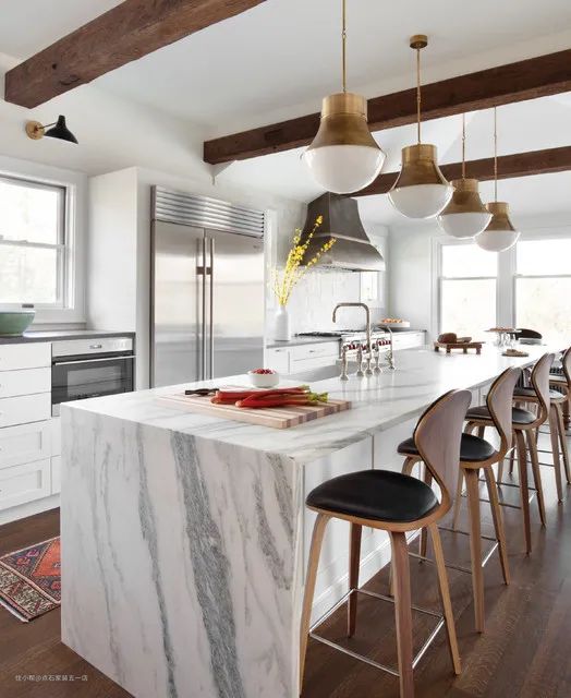 其次,还可以在墙面、软装或其他细节方面加入各种纹理,像石材、皮革、天鹅绒、黄铜等材质,以达到丰富平面空间的视觉层次。