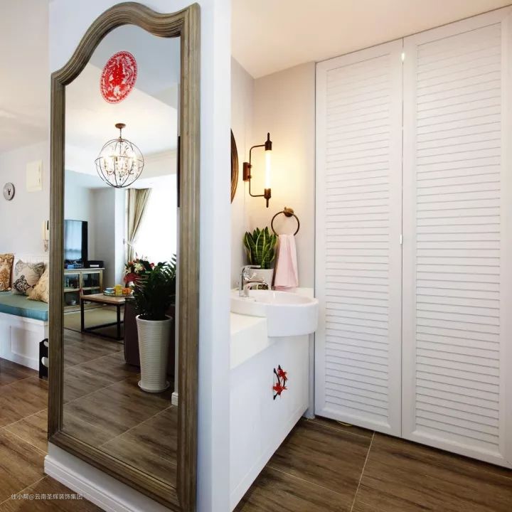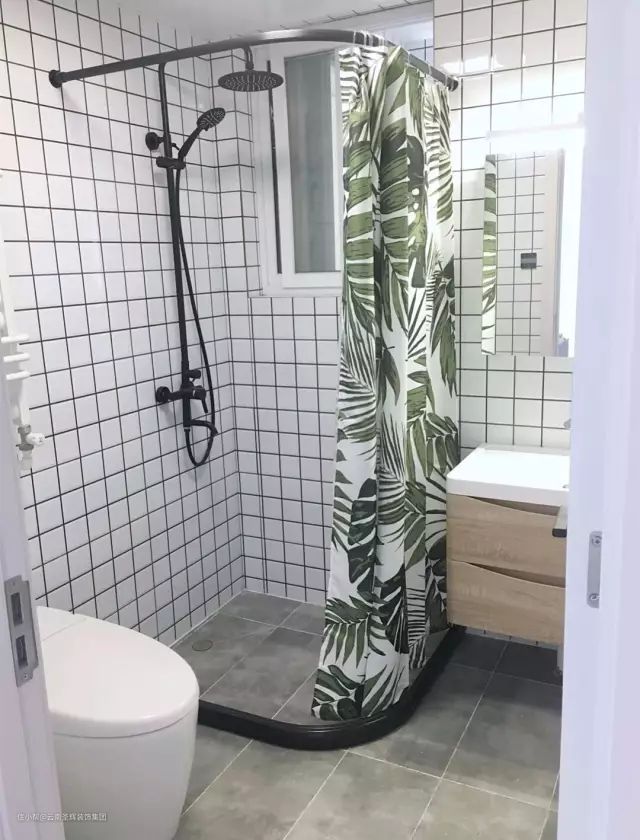 卫生间太小实在是容不下玻璃隔断,但是又讨厌卫生间没有一个明显的间隔,那么淋浴区浴帘就是不错的选择了。一定程度上,浴帘也可以做到干湿分离。
