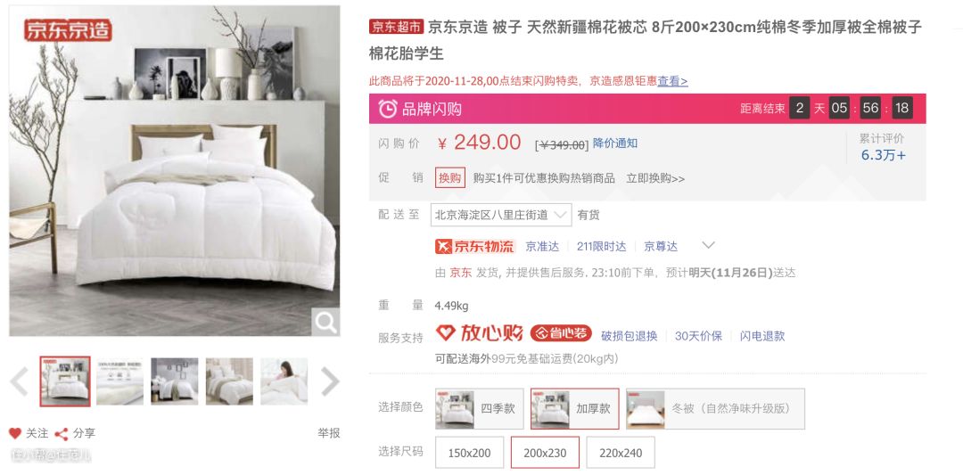 我的建议是,供暖地区、南方地区别买太厚,常规双人被1200g以内就够了。