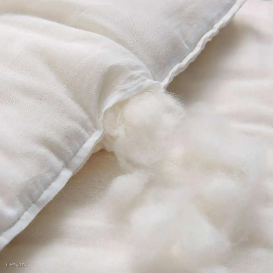 棉花被的另一个特点是植物纤维特性,没那么细碎,也不容易过敏(对鹅绒、羊毛过敏的人不少),而且没有静电。