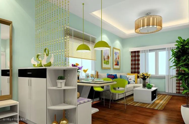 卡座是目前比较流行的方式,结合储物柜,卡座式的餐厅,节省空间,还有强大收纳,并且卡座样式丰富,色彩也能任意挑选,漂亮又实用。