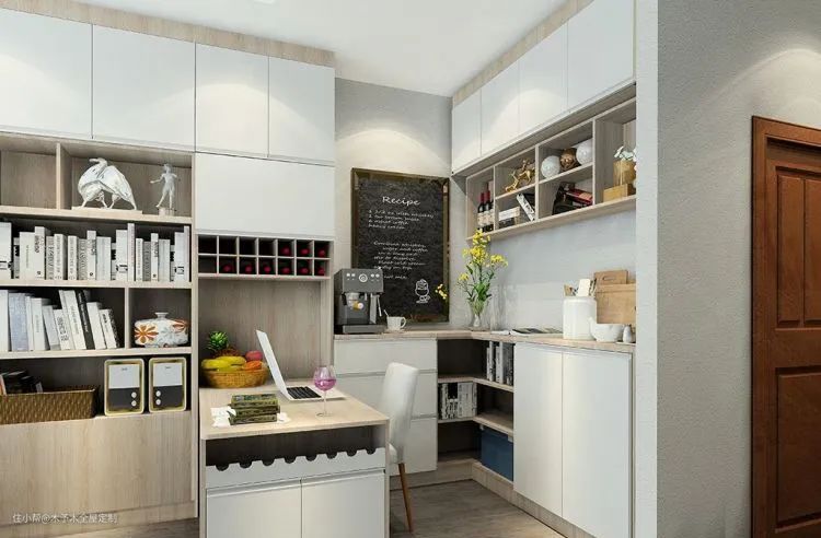 ▲餐桌采用折叠餐桌,侧面设计收纳格,餐桌收起来时和餐边柜融为一体,不占用过道空间;需要就餐和办公室,就拉出来使用,美观又实用。