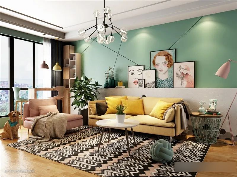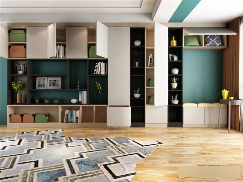 考虑到层高的问题,柜体没有做到顶,却凭借着错落有致的布局,让空间趣味与时尚兼备。