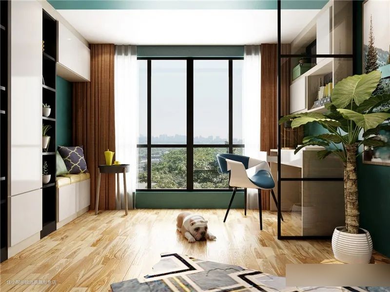 阳台拥有良好的通风、采光,当然适合做书房,在靠墙位置定制书柜和书桌,面对一片开阔的风景,无论学习还是工作都更神清气爽,效率倍增!
