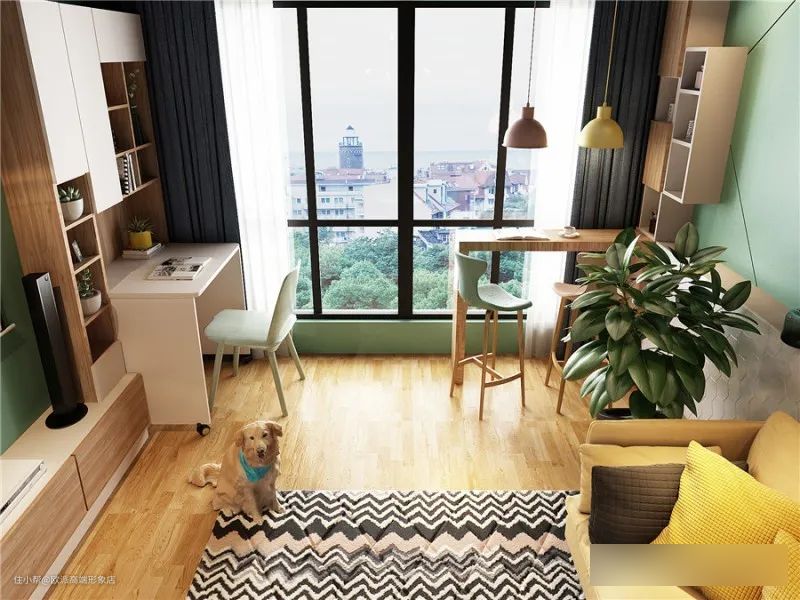 阳台采光好,在窗边搭建一个吧台和书柜,在和煦的光线下阅读,分外写意;累了还能眺望窗外美景,赏心悦目。