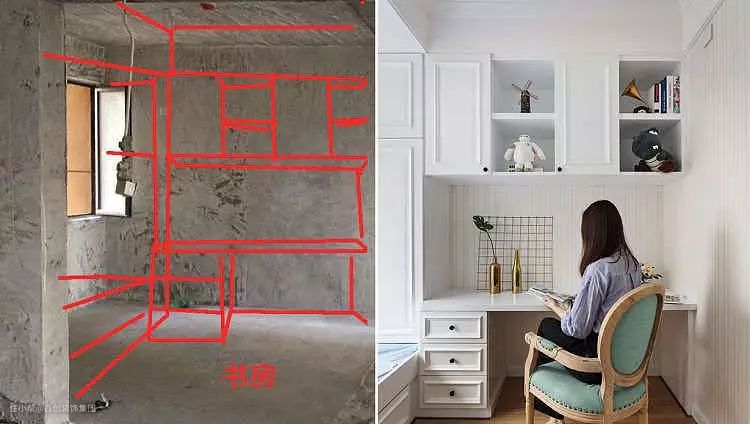 儿童房:左边是开工前照片,后边竣工后实景照。儿童房空间虽然不大,靠窗设计的榻榻米满足小朋友成长中所需要所有功能。休息、储物,学习、玩耍都可以实现。